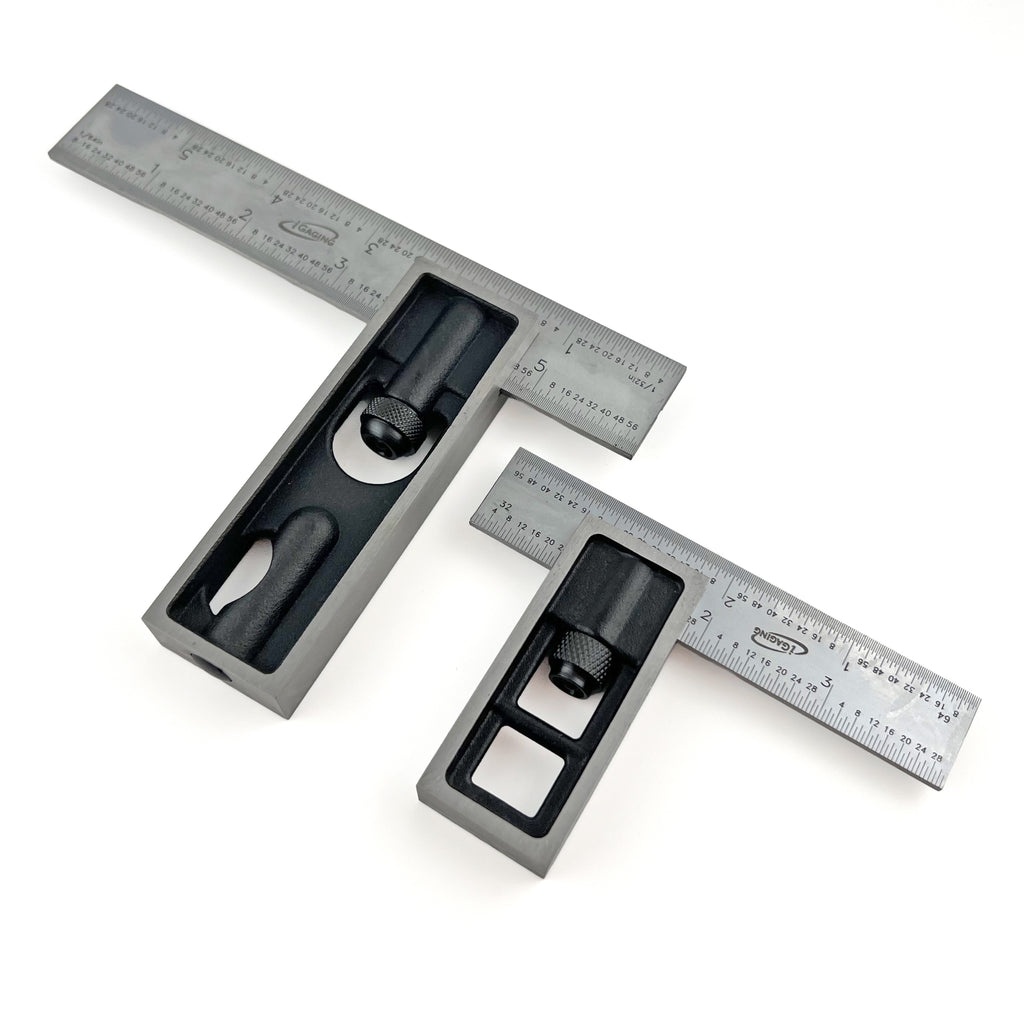 A great little set at a great value! The adjustable 4” double square has been a best seller since we introduced it this summer. This set also includes a 6” double square, sure to be just as handy.